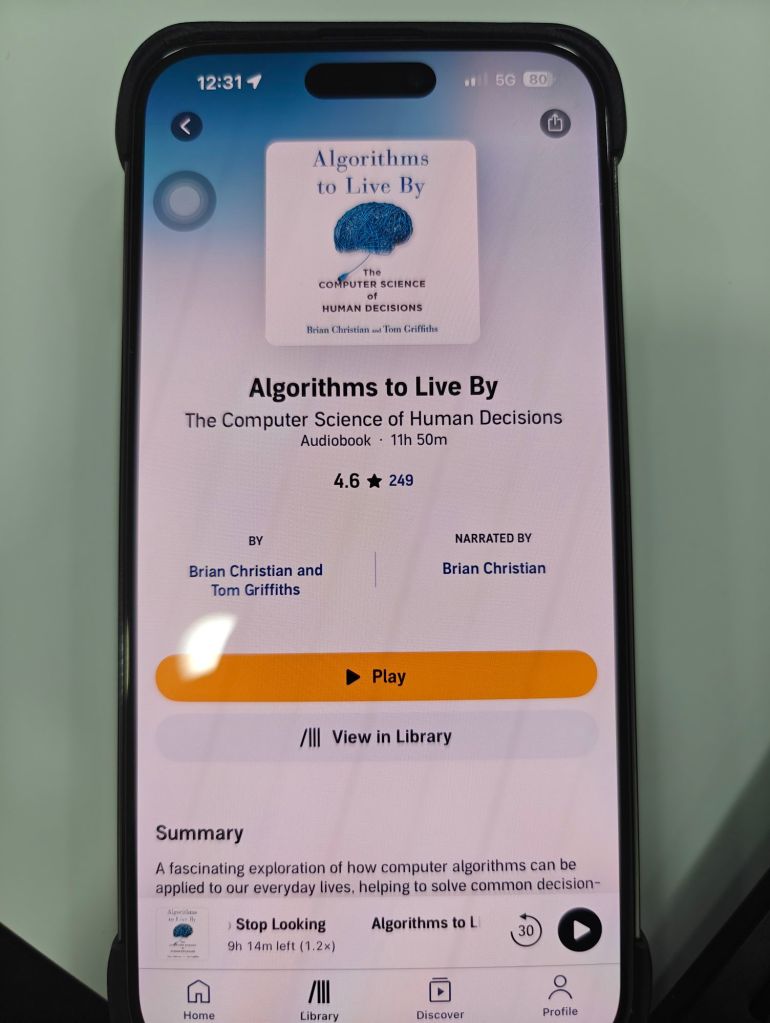 All in all a very interesting book on life and how many actions are algorithmically derived! The final parts of the book end with moral and statements of positivity like Be kinder to others and be kinder to yourself or how life is too complicated and the fact that these aren’t the concessions we make for being rational but that’s what being rational means!