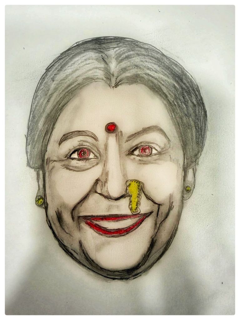 A speck of colour on a black and white sketch on world art day! The skin tone has been added by the iPhone camera…