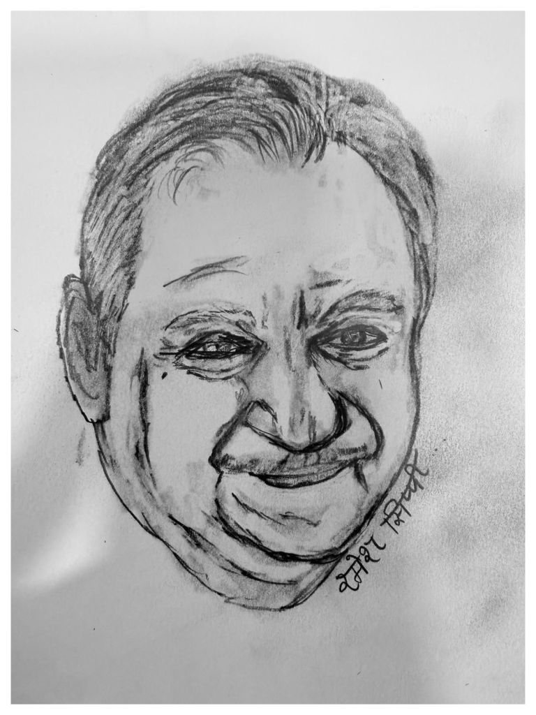 Like the mango is the national fruit of India; if there’s a national movie it could be Sholay! A quick sketch of Ramesh Sippy! It’s fifty years of Sholay!